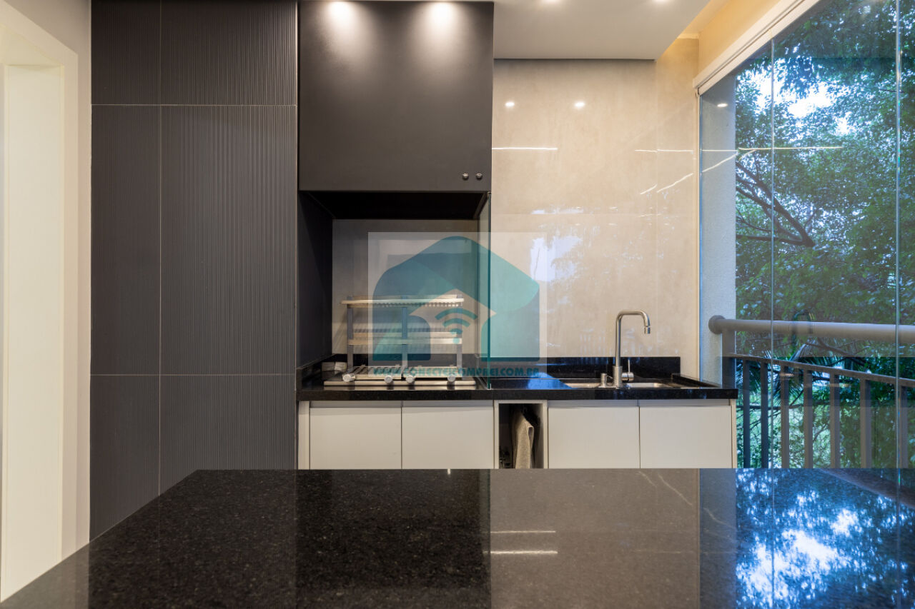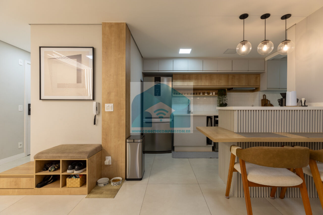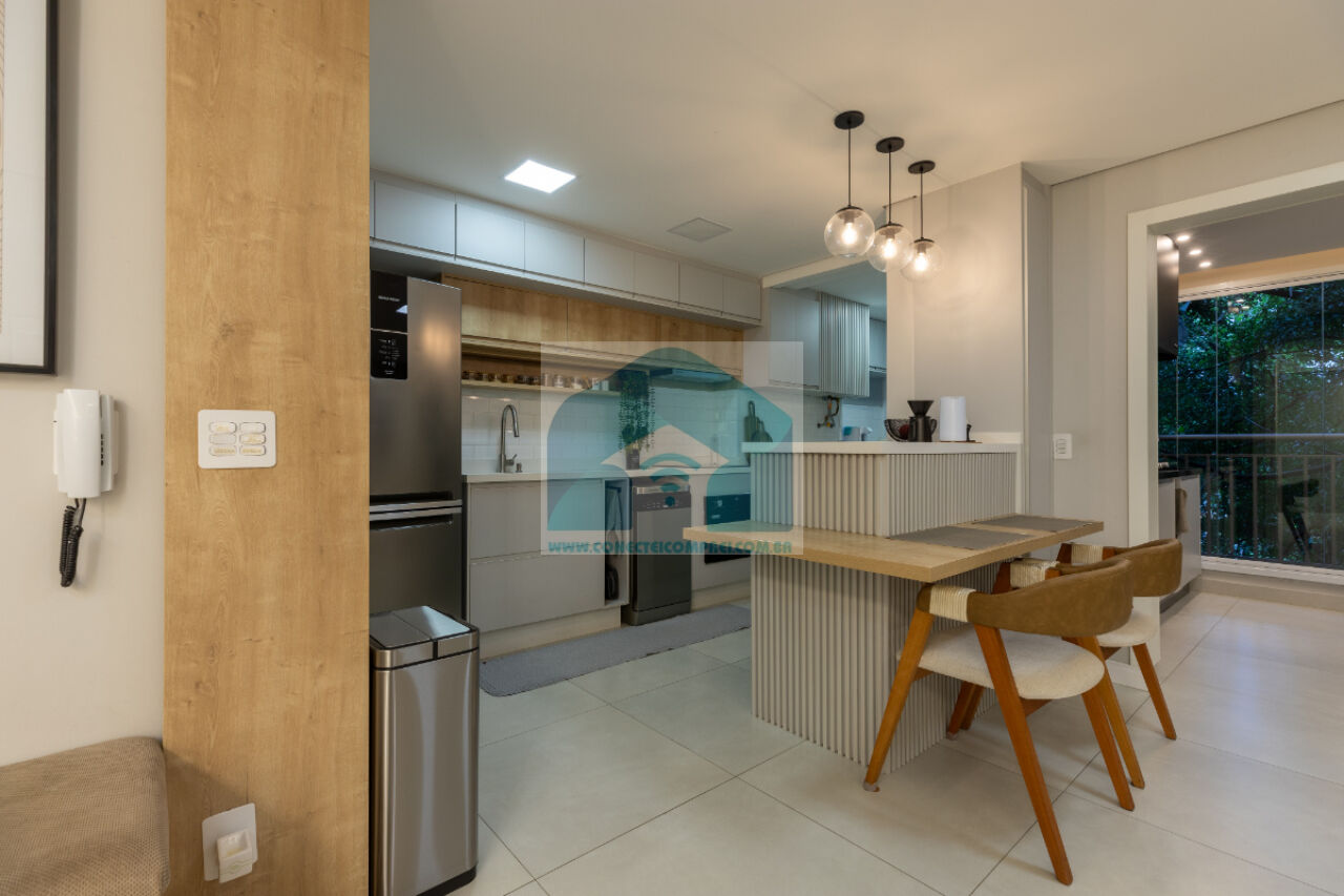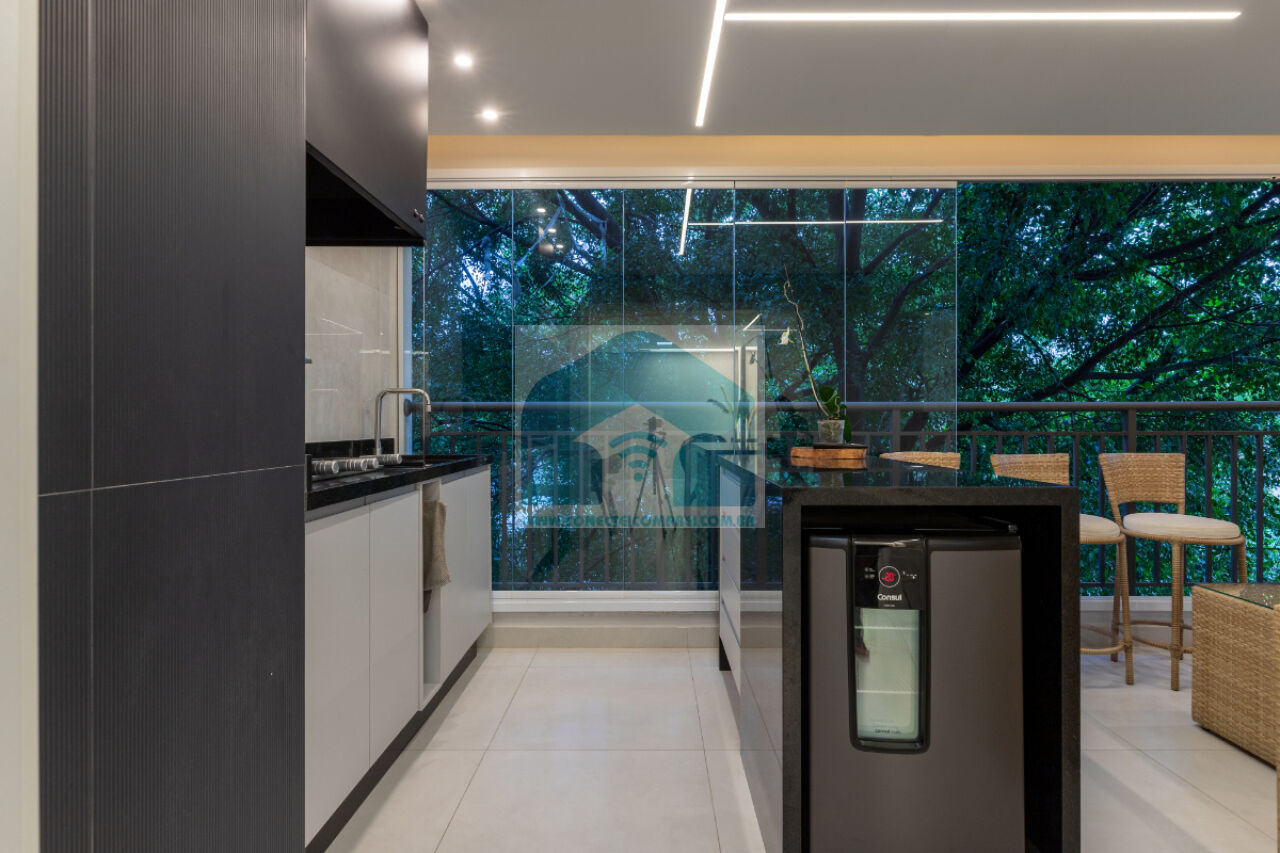 sempre com uma vista incrível do condomínio. A cozinha americana, prática e funcional, integra-se à lavanderia,