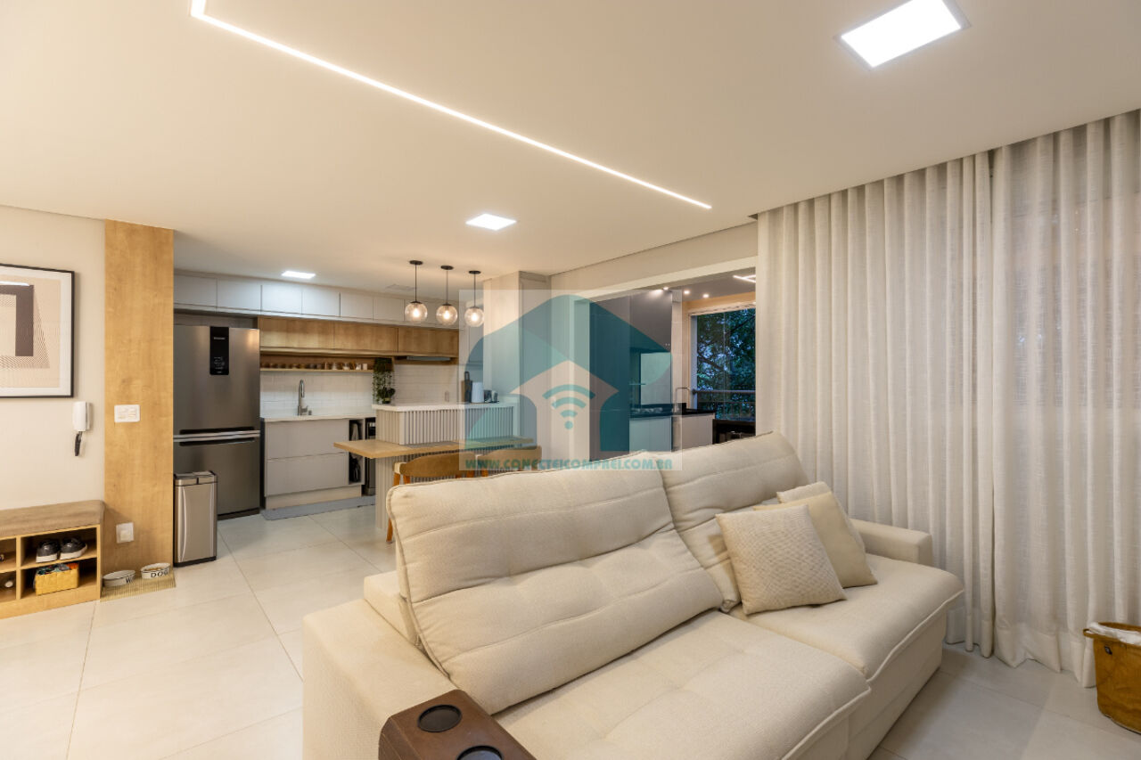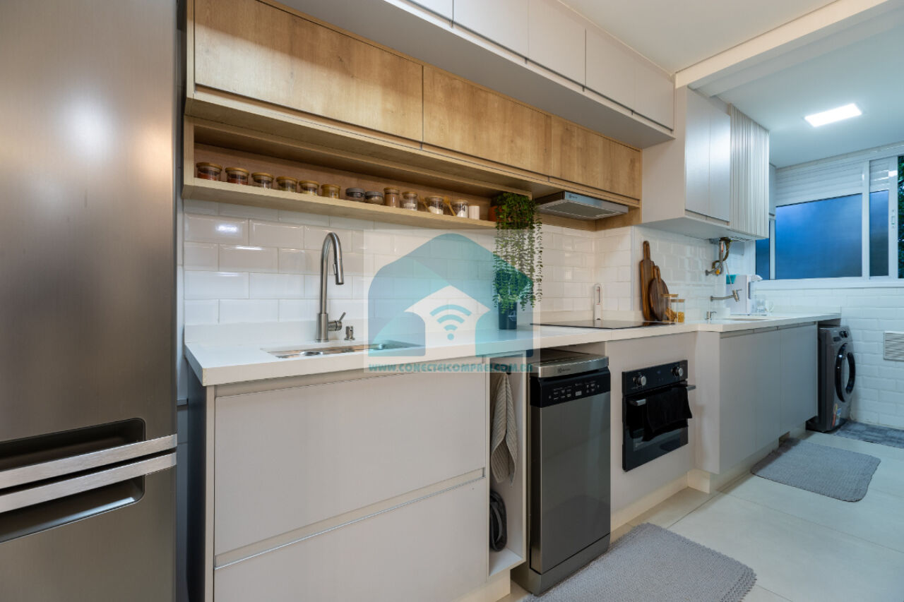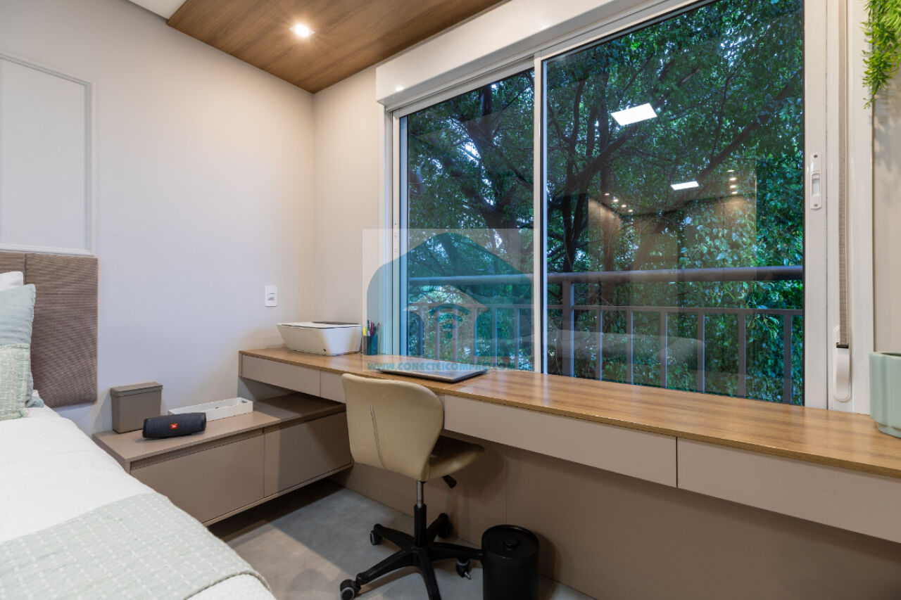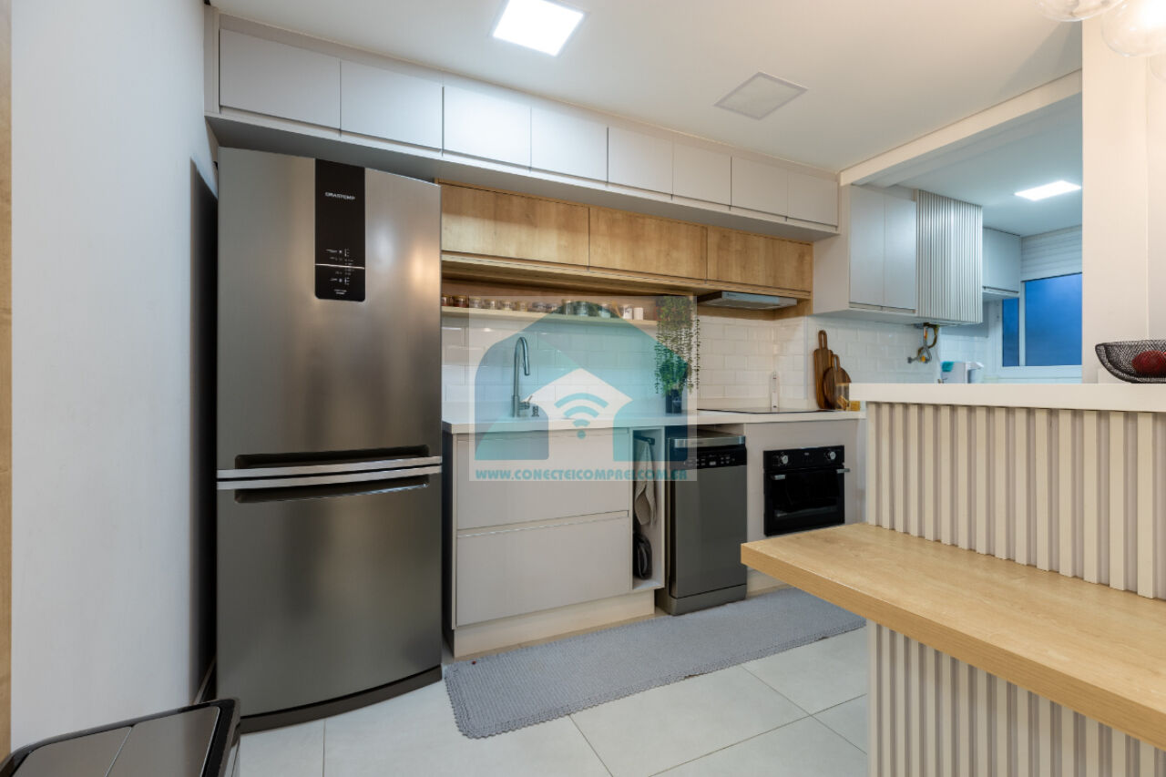 sempre com uma vista incrível do condomínio. A cozinha americana, prática e funcional, integra-se à lavanderia,