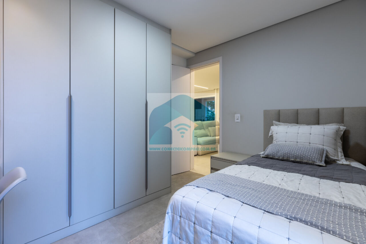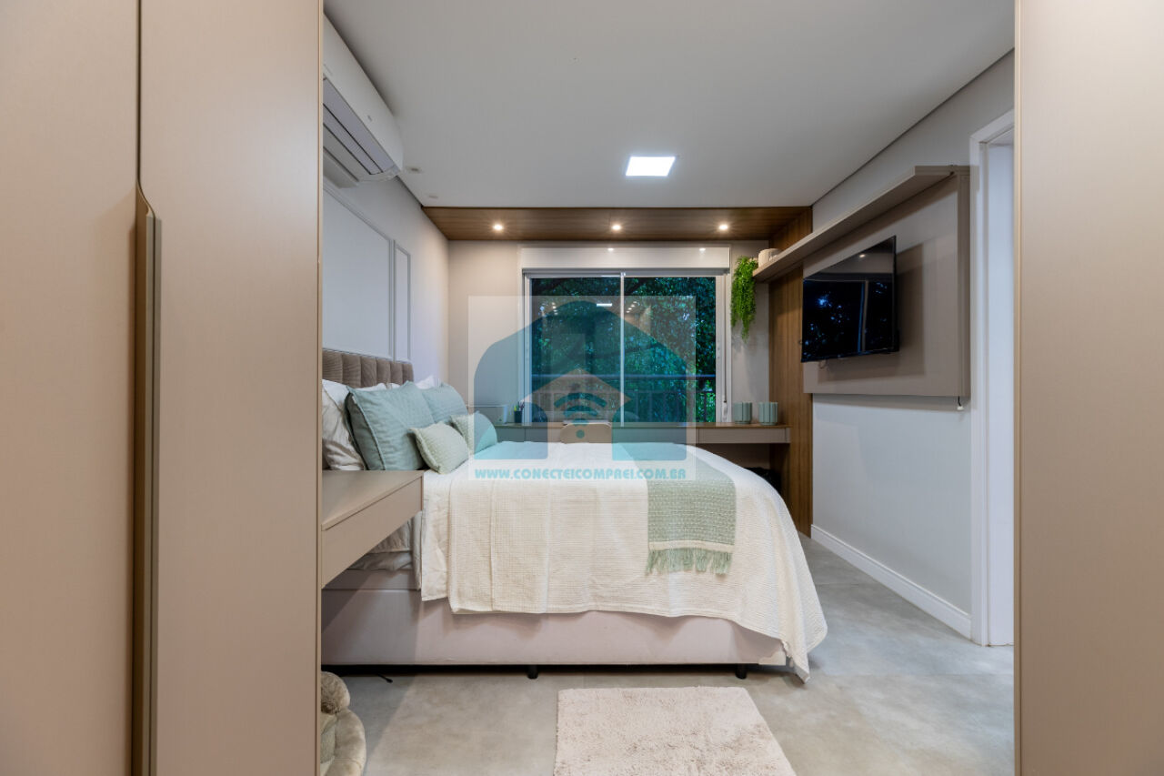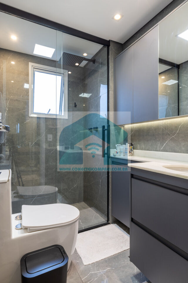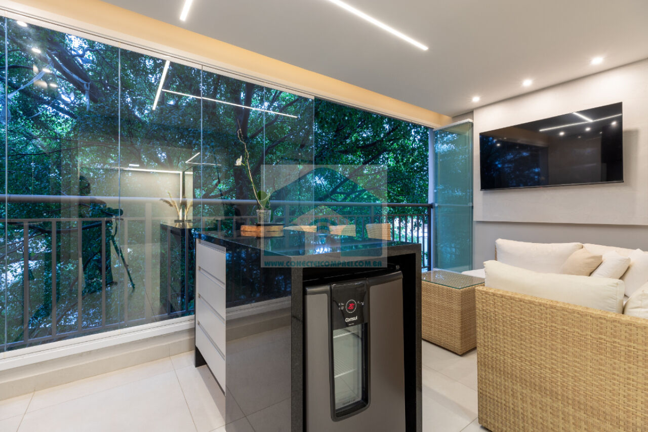 sempre com uma vista incrível do condomínio. A cozinha americana, prática e funcional, integra-se à lavanderia,
