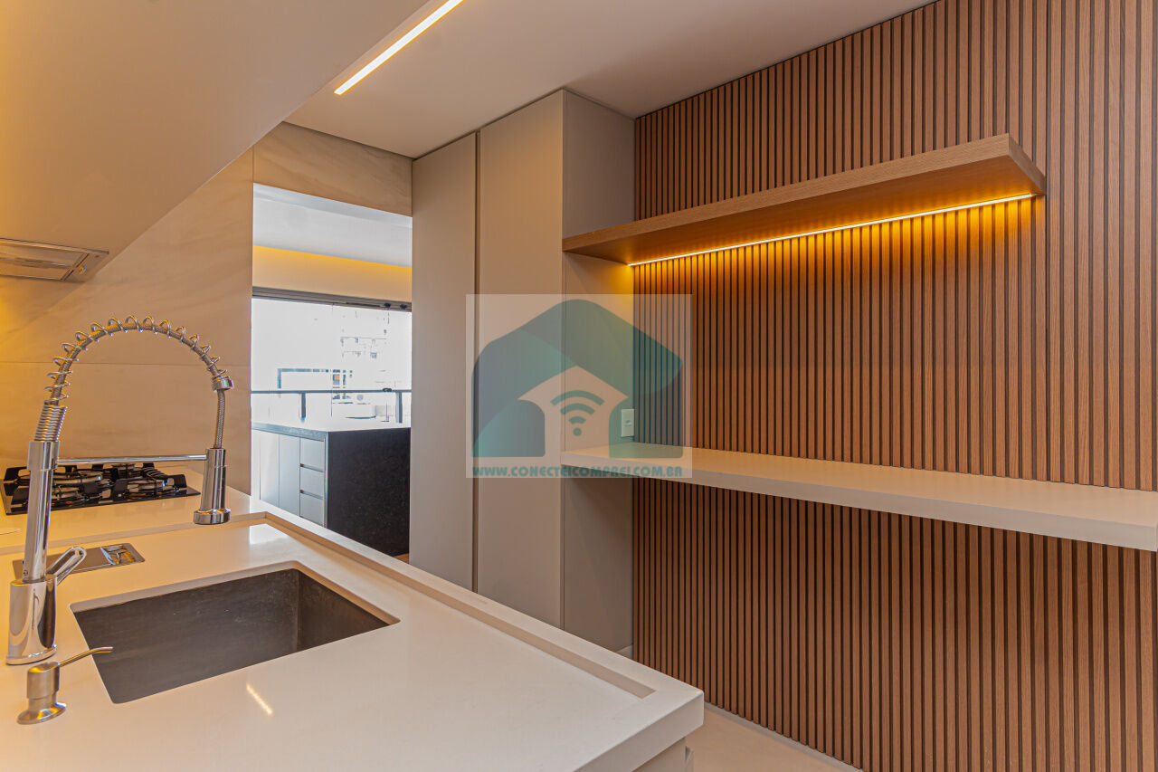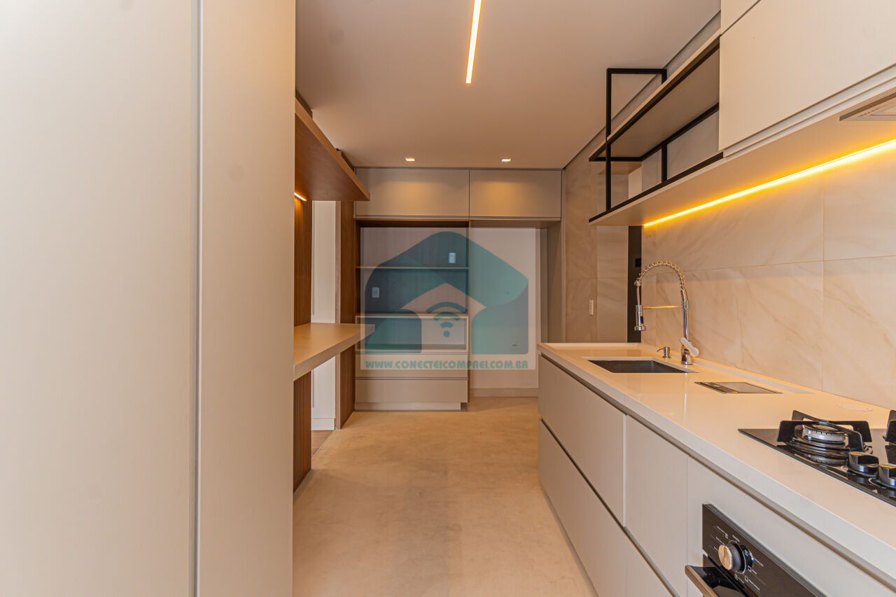 A cozinha é independente e repleta de armários planejados, assim como a área de serviço e a despensa, que proporcionam praticidade ao dia a dia. Para quem trabalha de casa, o imóvel conta ainda com um escritório bem distribuído, oferecendo conforto e produtividade.