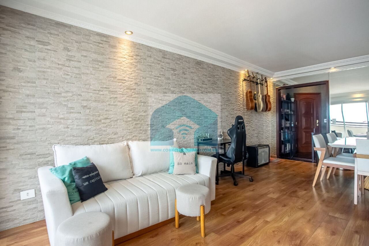 A sala ampla integra os ambientes de maneira harmônica, criando um espaço ideal para receber amigos e familiares. A cozinha moderna e funcional conta com armários planejados, otimizando a organização e o aproveitamento do espaço. O apartamento também oferece uma área de serviço espaçosa, trazendo mais praticidade ao seu dia a dia.