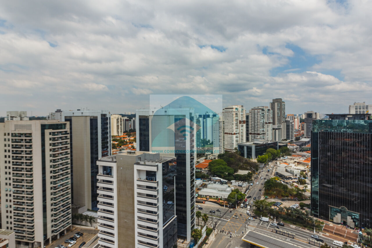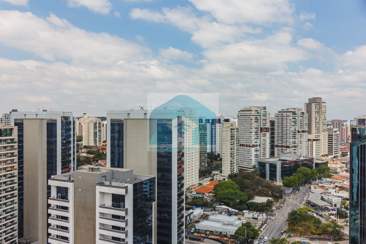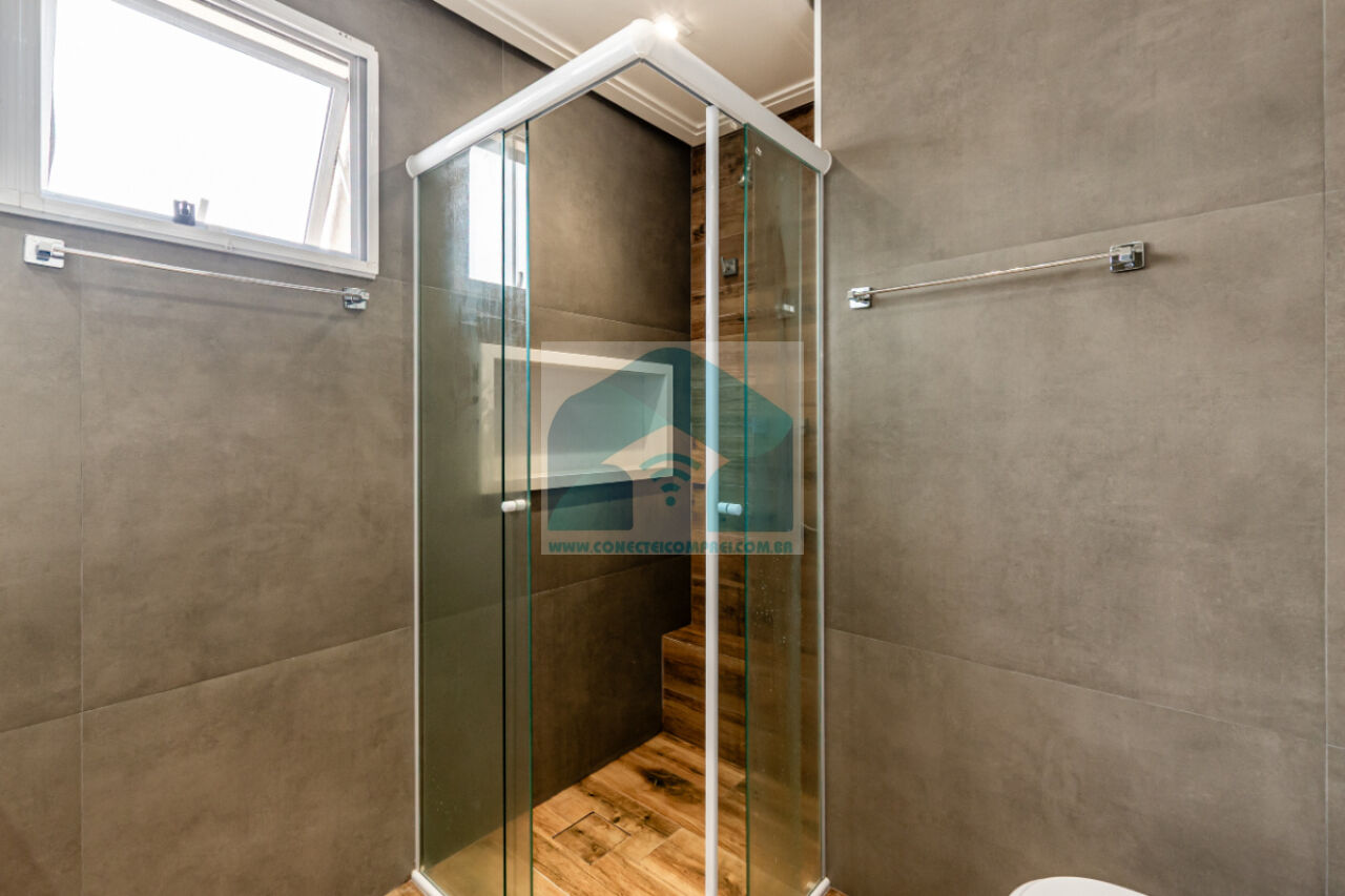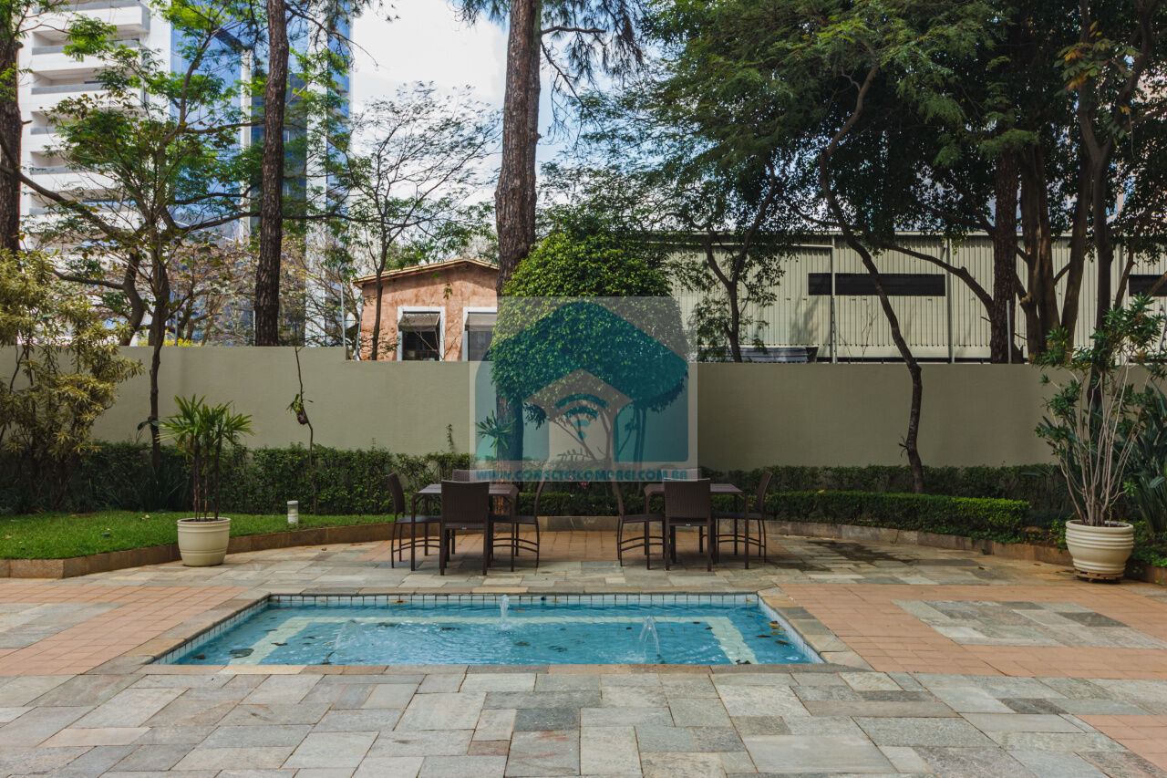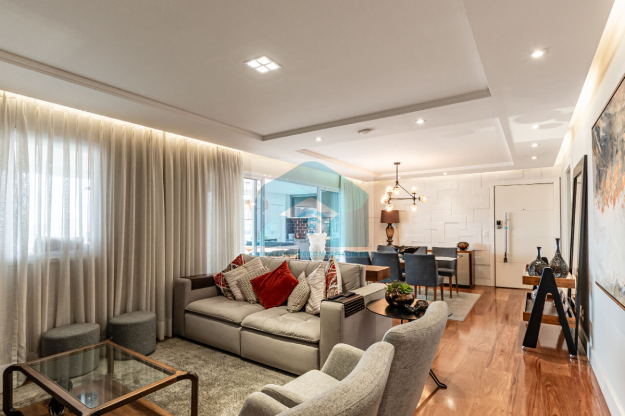 (4) suíte master - piso em madeira estruturado Hakwood Carvalho europeu. Cômoda com tampo e laterais em couro natural,. Cama queen size (colchão não incluso) com cabeceira em couro natural e painel de fundo em marcenaria , 2 mesas de cabeceiras. TV Sony 55 pol. Painel da TV em couro. Cortina uniflex não motorizada. Ar condicionado split espelhado. Papel de parede e espelhos. Iluminação técnica com lâmpadas em LED.