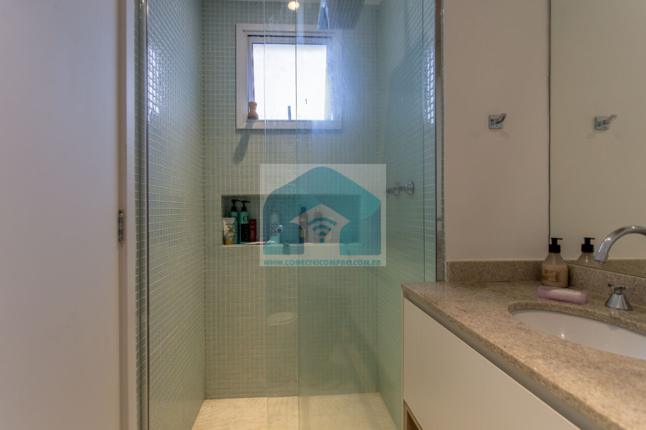 4 banheiros, sendo um lavabo. O apartamento está localizado em um andar alto, recebendo sol da manhã, garantindo